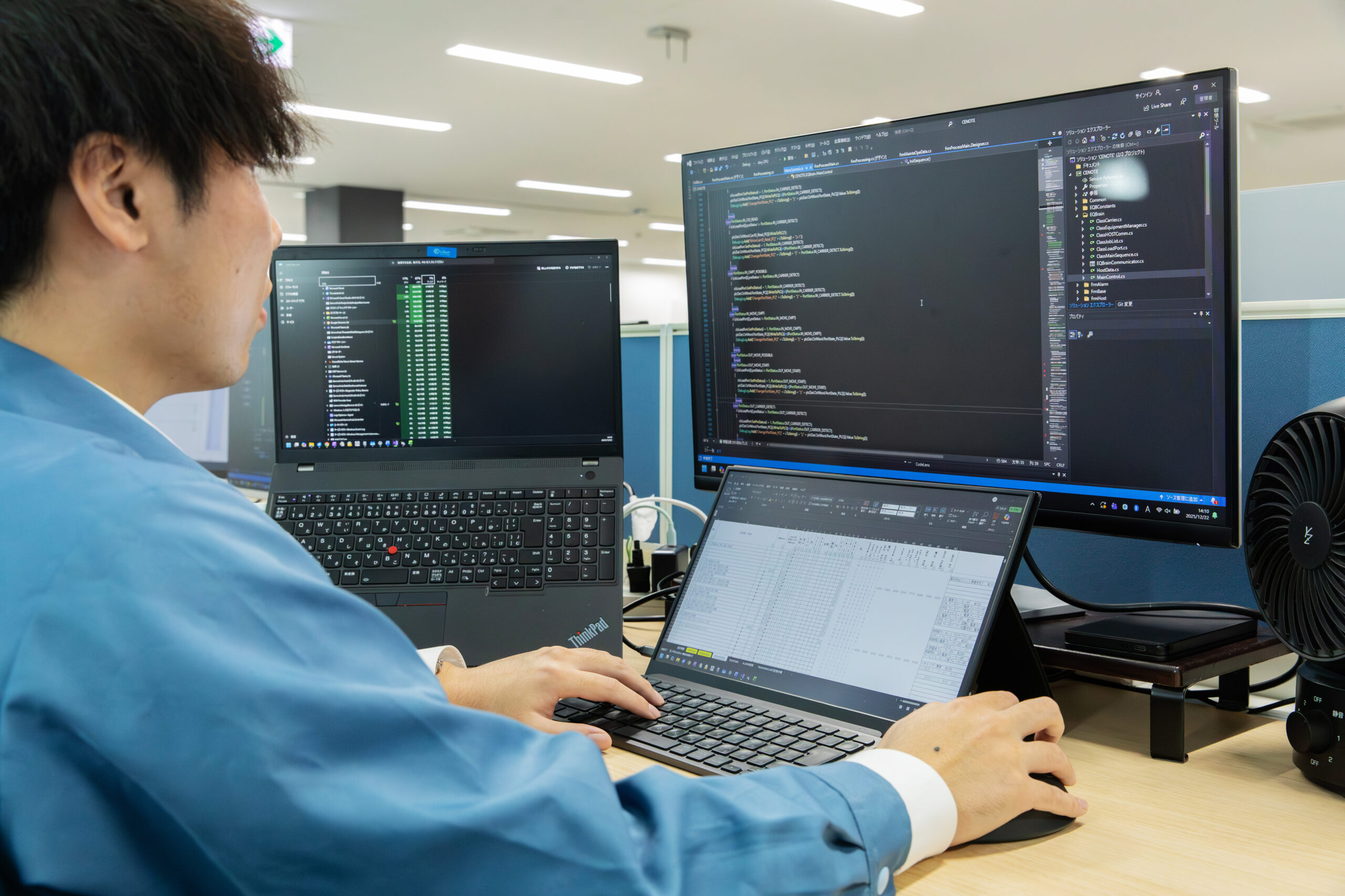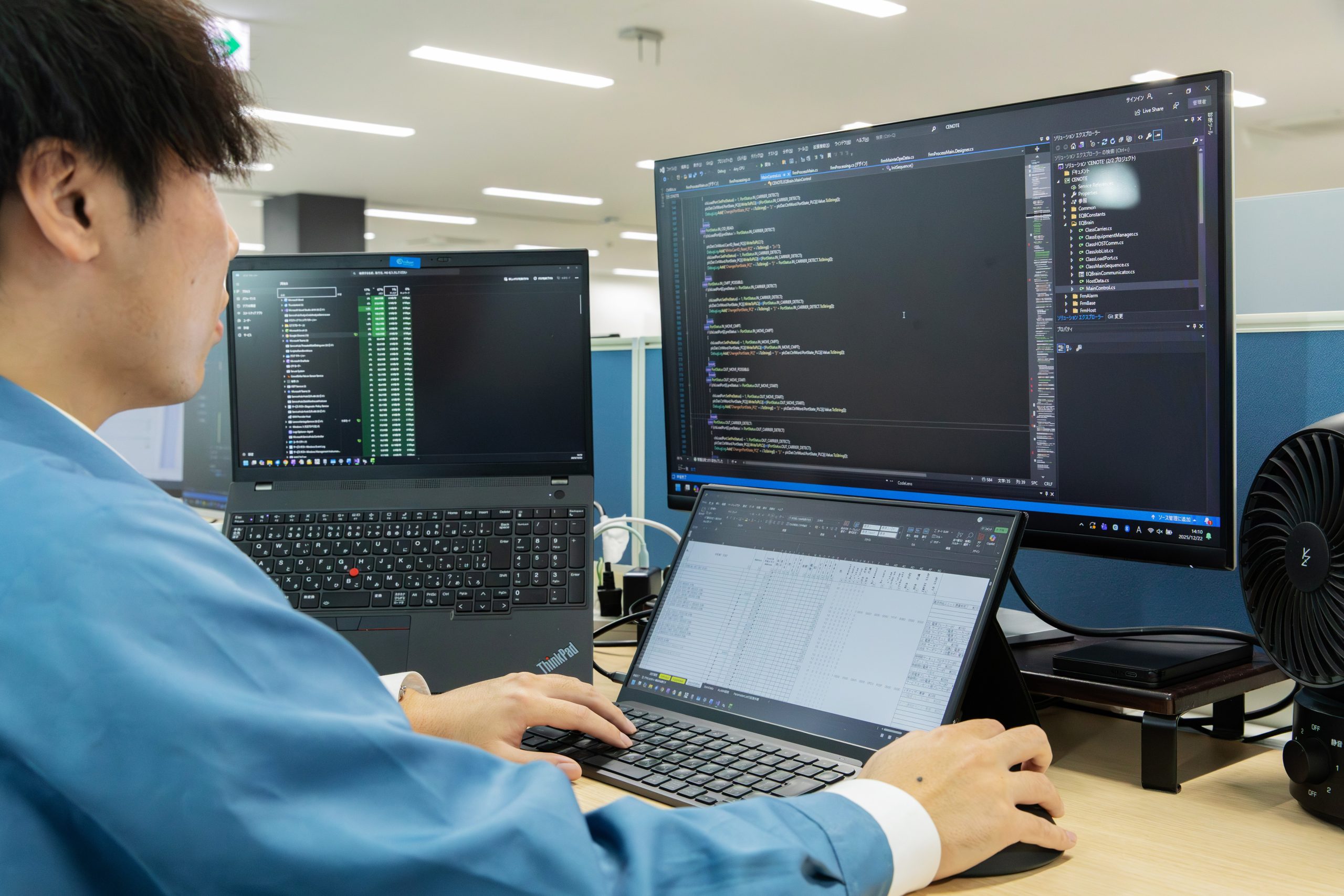 基本はソフトウェアエンジニアとして、装置を制御するためのプログラム設計を担当しています。仕様決定のための会議に参加し、国内外への出張対応やお客様からの問い合わせ対応も行っています。さらに、業務効率化を目的にさまざまなツールを検証し、改善に取り組んでいます。
